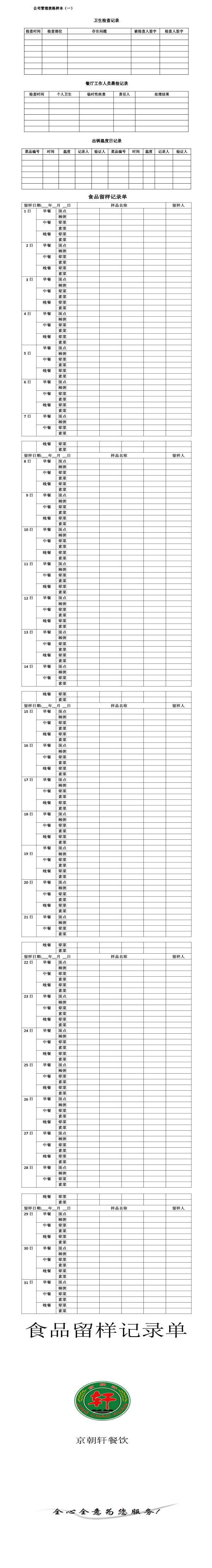 公司管理表格樣本(一)